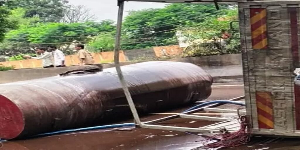 यह घटना शनिवार को लगभग 11 बजे फोरलेन सड़क पर कुम्हारी क्षेत्र के खारुन ग्रीन कॉलोनी के पास हुई। मिनी ट्रक सीजी 04 एलएफ 7015 रायपुर से दुर्ग की ओर जा रही थी। मिनी ट्रक के पीछे डाले पर केमिकल से भरा टैंकर लोड था। चालक गुलाब साहू और हेल्पर इमरान ने बताया कि मिनी ट्रक के डाला में साबुन बनाने में इस्तेमाल आने वाली केमिकल से भरा टेंकर था। अचानक टायर फटने से मिनी ट्रक अनियंत्रित होकर पलट गई। ट्रक के पलटते ही पीछे डाले पर रखा टैंकर लुढ़ककर सड़क पर जा गिरा। इसके चलते टेंकर का केमिकल सड़क से लेकर समीप के खारुन ग्रीन कॉलोनी तक फैल गया। इससे कॉलोनी के लोगों में अनहोनी के अंदेशे से खौफ पसर गया। वहीं देखते – देखते कुम्हारी की ओर लंबा जाम लग गया।