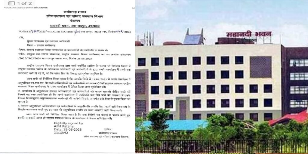 आदेश पत्र में कहा गया है कि आदेश के बाद भी अधिकांश जिलों में NHM अधिकारी-कर्मचारी कार्यालय नहीं पहुंच रहे हैं, जो लोकहित के विरुद्ध है और अनुचित है. कार्यालय में उपस्थित नहीं होने पर कर्मचारी को नोटिस जारी करें, जिसमें लिखा हो कि उपस्थित नहीं होने की स्थिति में उनकी सेवा समाप्त की जाएगी. सभी सीएमएचओ को यह भी निर्देशित किया गया है कि अनुपस्थित अधिकारी कर्मचारियों के कार्य नहीं वेतन नहीं के सिद्धांत पर इस माह का वेतन आहरित ना किया जाए.