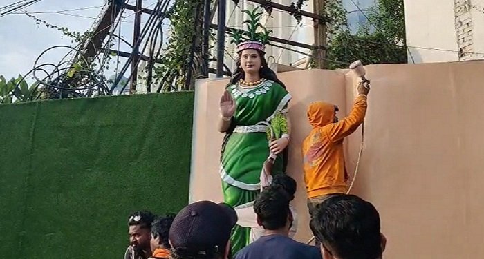 रायपुर : राजधानी के वीआईपी चौक पर छत्तीसगढ़ महतारी की प्रतिमा उखाड़े जाने के एक दिन बाद सोमवार को दोबारा स्थापित कर दी गई. मूर्ति को खंडित करने वाले आरोपी को पुलिस ने गिरफ्तार कर लिया है. बताया जा रहा है कि आरोपी मानसिक विक्षिप्त है. बता दें कि घटना तेलीबांधा थाना क्षेत्र की है. जहां रविवार को वीआईपी चौक के पास स्थापित छत्तीसगढ़ महतारी की प्रतिमा को उखाड़ दिया गया था. घटना से लोगों में भारी आक्रोश था.
