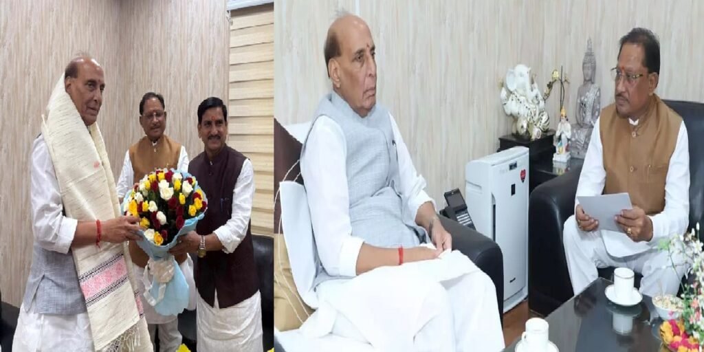 छत्तीसगढ़ के मुख्यमंत्री विष्णुदेव साय ने आज केंद्रीय रक्षा मंत्री राजनाथ सिंह से मुलाकात कर बिलासा देवी केंवट एयरपोर्ट, चकरभाठा (बिलासपुर) के विस्तारीकरण से संबंधित विषयों पर विस्तृत चर्चा की. इस महत्वपूर्ण बैठक में केंद्रीय आवासन एवं शहरी कार्य राज्य मंत्री और बिलासपुर के सांसद तोखन साहू भी शामिल रहे.