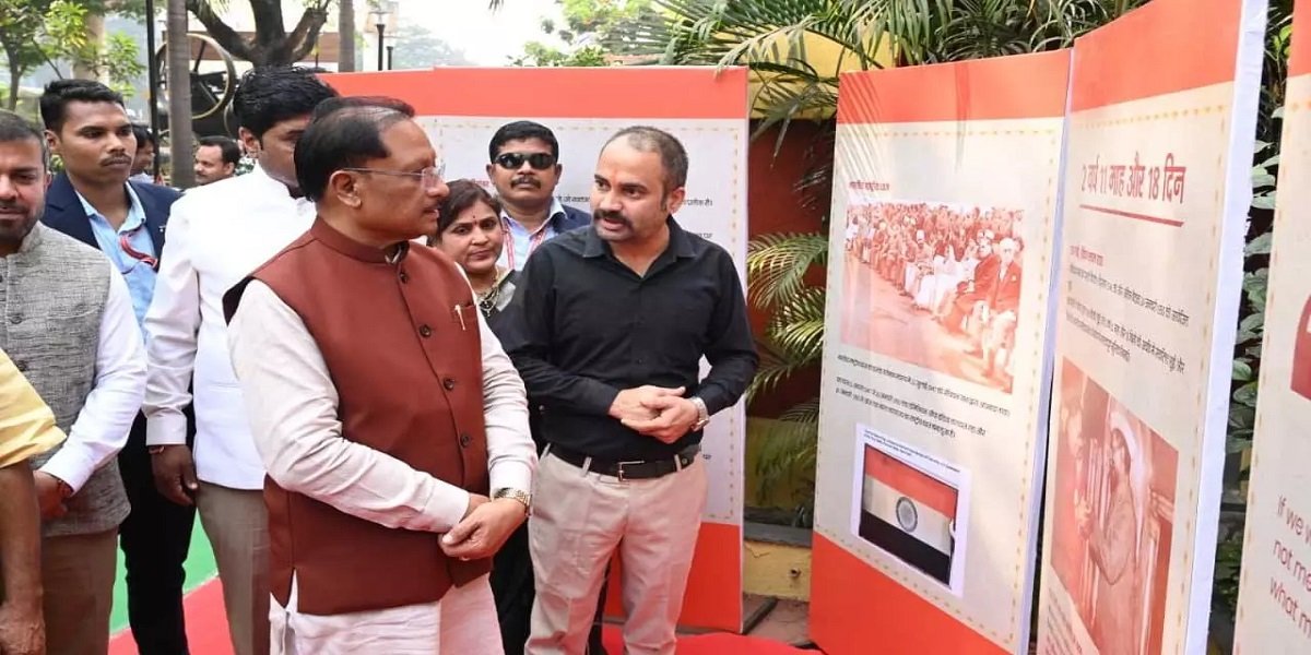 रायपुर : CM विष्णुदेव साय ने संविधान पर आधारित प्रदर्शनी का अवलोकन किया। सीएम साय ने लिखा, संविधान दिवस के अवसर पर आज रायपुर के टाउन हॉल में आयोजित कार्यक्रम में शामिल होकर संविधान शिल्पी, भारत रत्न डॉ. भीमराव अंबेडकर जी को नमन किया।