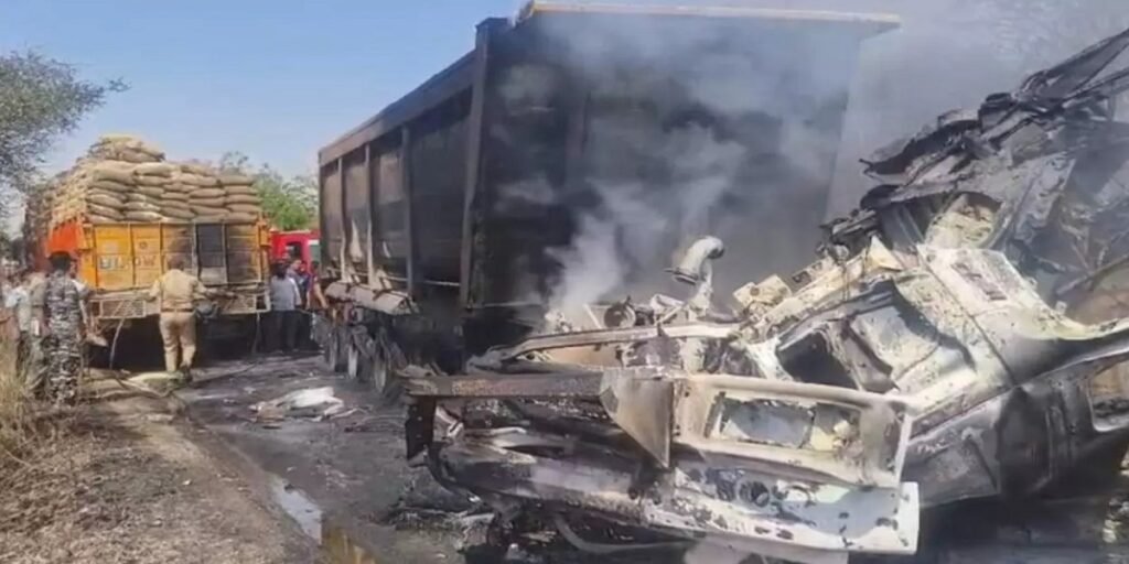 बलरामपुर : जिले के त्रिकुंडा थाना क्षेत्र अंतर्गत महुली के पास शुक्रवार को एक दर्दनाक सड़क हादसा हो गया। वाड्रफनगर-रामानुजगंज मुख्य मार्ग पर क्लिंकर से लदे ट्रक और चावल से भरे ट्रक के बीच आमने-सामने की जोरदार टक्कर हो गई। टक्कर इतनी भीषण थी कि क्लिंकर लोड ट्रक में अचानक आग लग गई और ट्रक चालक आग की चपेट में आकर जिंदा जल गया। इस घटना से मौके पर अफरा-तफरी का माहौल बन गया। जानकारी के अनुसार दोनों ट्रक तेज रफ्तार में विपरीत दिशा से आ रहे थे। महुली के पास पहुंचते ही किसी कारणवश दोनों वाहनों के बीच जोरदार टक्कर हो गई। टक्कर के तुरंत बाद क्लिंकर लोड ट्रक में आग भड़क उठी और देखते ही देखते आग ने पूरे ट्रक को अपनी चपेट में ले लिया।