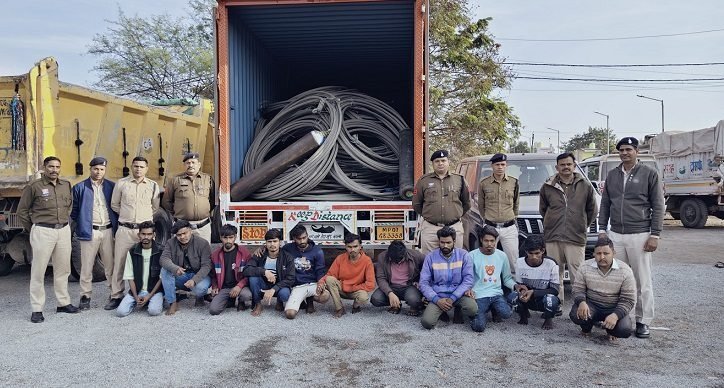 जांजगीर-चांपा : जिले में केबल व बिजली तार चोरी की लगातार बढ़ती घटनाओं पर पुलिस ने बड़ी कार्रवाई करते हुए अंतरजिला केबल चोरी गिरोह का पर्दाफाश किया है। सायबर सेल एवं थाना अकलतरा पुलिस की संयुक्त कार्रवाई में गिरोह के 11 सदस्यों को गिरफ्तार किया गया है। आरोपियों के कब्जे से करीब 12 टन चोरी का केबल व तार, चोरी में प्रयुक्त उपकरण और वाहन सहित कुल 1 करोड़ 11 लाख रुपये की संपत्ति जब्त की गई है।