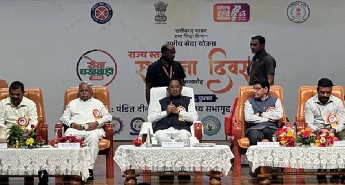 पंडित दीनदयाल उपाध्याय सभागृह में आयोजित कार्यकम में मुख्यमंत्री विष्णु देव साय ने राष्ट्रीय सेवा योजना के स्थापना दिवस की बधाई देते हुए कहा कि एनएसएस का कार्य राज सेवा, देश के लिए सेवा है. एक पेड़ लगाते, किसी को हॉस्पिटल पहुचाते हैं, ये राज सेवा है. स्वार्थ को छोड़ सभी कार्य राज सेवा है. रजत जयंती वर्ष पर समारोह आयोजित कर रहे हैं.