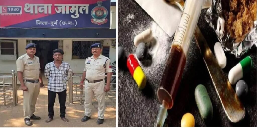 भिलाई: दुर्ग-भिलाई पुलिस ने नशीली दवाओं के अवैध कारोबार में लिप्त युवक को गिरफ्तार किया है। उसके कब्जे से भारी मात्रा में अल्फाजोलम टैबलेट और कैश जब्त की गई है। आरोपी अपने एक नाबालिग साथी के साथ मिलकर नशीली दवाइयां बेच रहा था। मामला जामुल थाना क्षेत्र का है। दरअसल, शनिवार शाम को पुलिस को सूचना मिली थी कि सीनू इंजीनियरिंग वर्क्स के सामने मंगल बाजार छावनी क्षेत्र में दो युवक नशीली गोलियां बेचने के लिए ग्राहक तलाश रहे हैं। जिस पर पुलिस ने मौके पर दबिश दी। पुलिस को देखते ही दोनों संदिग्ध भागने की कोशिश करने लगे, लेकिन टीम ने घेराबंदी कर दोनों को पकड़ लिया।