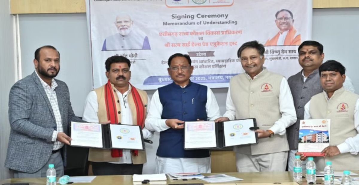 छत्तीसगढ़ में हेल्थकेयर सेक्टर में कौशल विकास को मजबूत करने के लिए बड़ा कदम उठाया गया है। राज्य सरकार और सत्य साईं हेल्थ एंड एजुकेशन ट्रस्ट के बीच एक महत्वपूर्ण समझौता ज्ञापन (MoU) पर हस्ताक्षर किए गए। इस एमओयू का उद्देश्य स्वास्थ्य सेवाओं की गुणवत्ता में सुधार के साथ-साथ प्रशिक्षित मानव संसाधन तैयार करना है।
