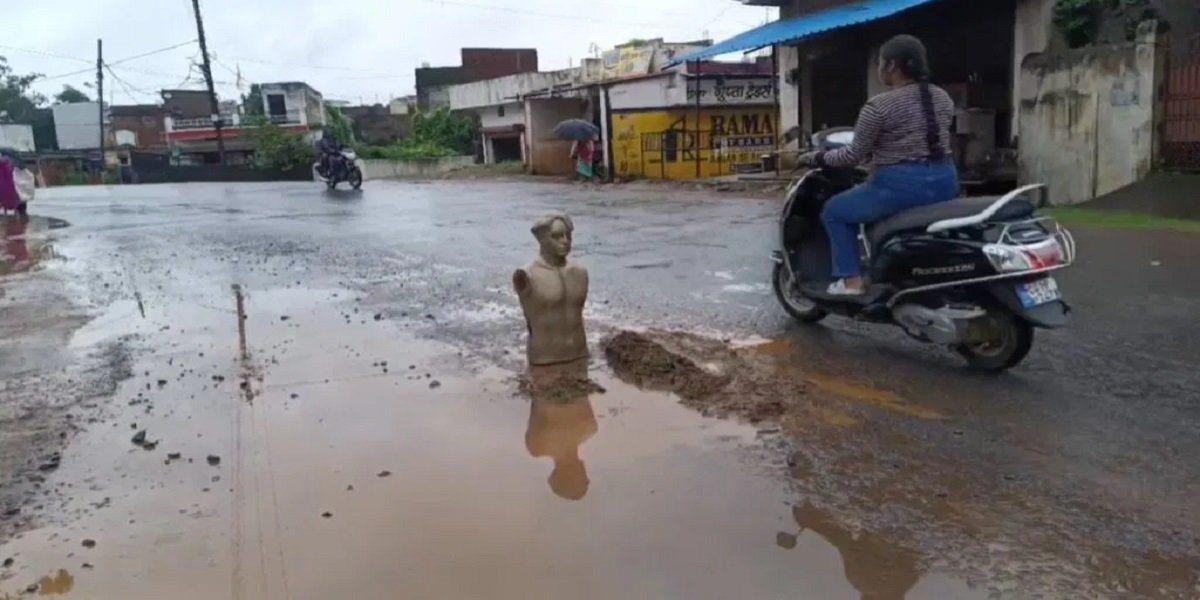 शहरवासियों ने खतरनाक गड्ढों के पास पुतले रख दिए, ताकि दूर से ही राहगीरों को खतरे का अंदेशा हो जाए और हादसे टाले जा सकें।